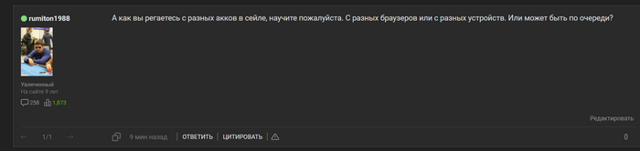 А как вы регаетесь с разных акков в сейле, научите пожалуйста. С разных браузеров или с разных устройств. Или может быть по очереди?