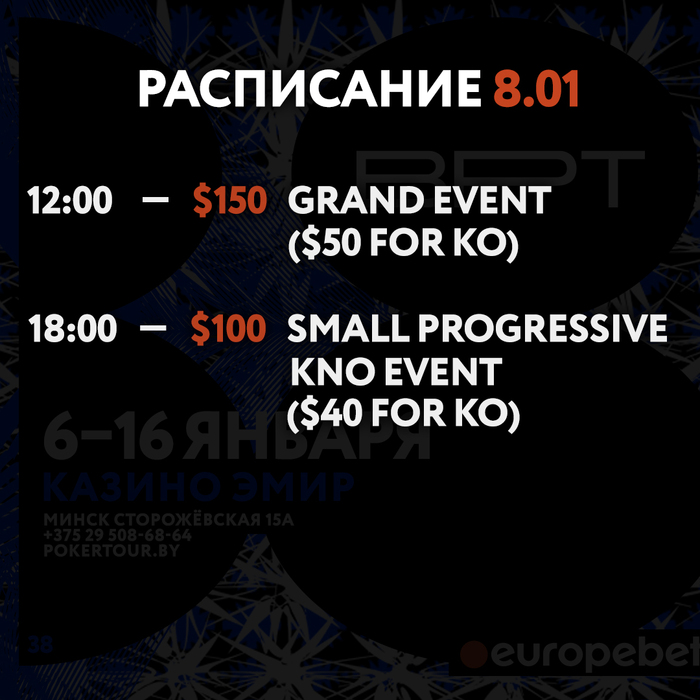 Уважаемые игроки, вечерний турнир $100 Small progressive KNO event переносится на 19:00.