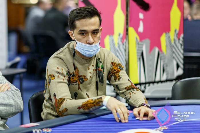 Рустамов изолирова лимпера ставкой 2,5к, на что получил пуш от совсем короткого стека и еще один олл-ин на стек около 37к. Закрыл третьим с .