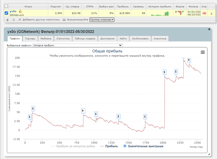 С такими мыслями я и начинал 22 год, ставя себе в целом не самую амбициозную задачу - закончить год минимум в +20к, и 5000 турниров. Но вот минуло пол года.. целых 6 месяцев постоянной игры, и в большинстве своем игры на стриме, когда тебя смотрят 50-300 человек, что тоже накладывает свой отпечаток.