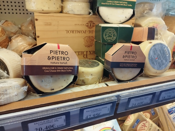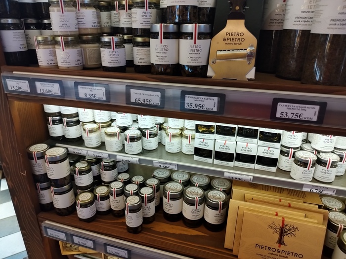 По трюфелям побеждает Cogimar с незначительным преимуществом. Есть отдельные позиции (трюфельный шоколад, спец терка), которых не встречал в азбуке и выбор соусов чутка богаче. Что бросилось в глаза некоторые целые трюфели в витринах начинают плесневеть, что непозволительно для магазинов такого уровня. В азбуке в этом плане всегда все было идеально. Никогда не попадалось несвежих продуктов, и всегда знал что если зимой возьмёшь там черешню по 100 долларов за кило, то она будет сочная и сладкая как летом.
