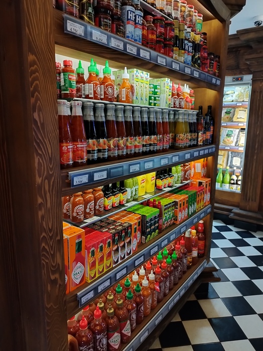 В категории соуса отдал бы победу с небольшим преимуществом Азбуке. Хотя там и нет канистры с табаско, но выбор всяких оригинальных гастрономических соусов поболее.