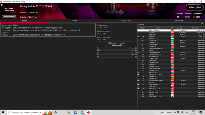 Норм поразрывал воскресники. Причем сессия началась с жесткого тильта, в "моей деревне" вырубилось электричество, соответственно наебнулся вайфай и ушел в ситаут на всех столах, на телефоне мобильный интернет тоже не работал, зарядки на ноуте осталось на полчаса. Пришлось спешно одеваться и идти с ноутбуком в руках на набережную по 35-градусной изнуряющей жаре, проклиная жизнь и Черногорию) Нашлось кафе у которых свой генератор(Seki Nautilius). За потраченное время у меня стек из 2 при 10 участниках в 320-мм билдере превратился в четвертый из шести. В 55-м биге тупо растаял с 10 бб до одного. Почти сразу был перерыв, за который я успел заказать фреш и немного успокоиться. Дальше начало складываться, дали электричество, вернулся домой играя на ходу.