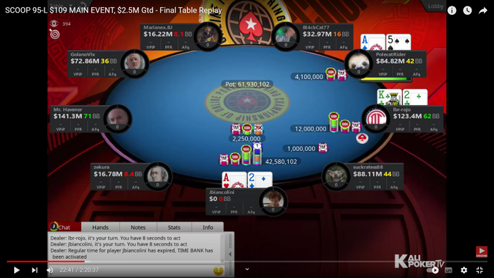 Финалка 109-го мейна скупа. Раздача иллюстрирующая бразильскую школу покера) Забавно что он даже не стал недопушить оставляя отскок на 2 пуша.