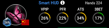 UTG солидный рег с Украины 23/20/8 на 300 рук где-то. На бтн Китай.