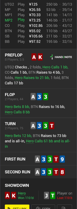 реальная картина -100бб примерно. Оказывается некоторые приложения не учитывают рейк.