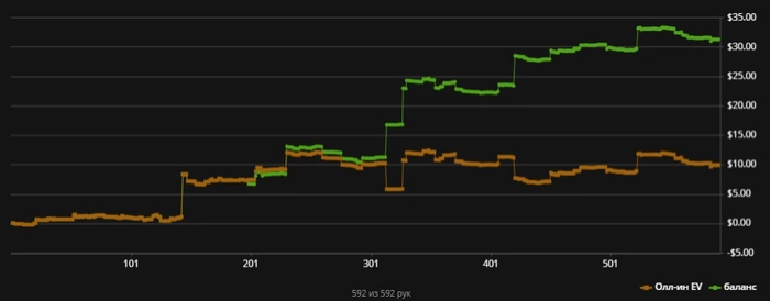 В 1ой половине сессии просто тупо сидел и почти все фолдил. Никакого экшена, скука смертная. Пришлось даже музыку поэнергичнее включить, что б не уснуть. Потом вроде получше пошло, выиграл пару стеков, а потом резко какая-то усталость напала и потеря концентрации. Можно было и лучше закончить, но увы.