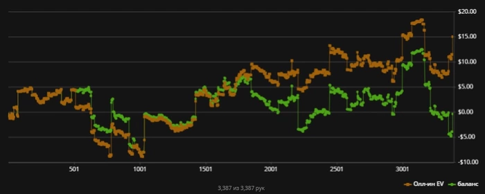 Проснулся сегодня с отличным настроением. Настрой боевой, думаю "Ну все, сегодня буду рвать всех". Но не тут-то было. С самого начала проигрывал все мелкие банки, совсем не попадал в доски, мне никто ничего не оплачивал, я оплачивал всем все. Хорошо, сделал паузу, сходил прогулялся. Вернулся, ничего не изменилось. Потом каким-то чудом выхожу в 0, думаю "Все надо вырубать это дерьмо" и тут же мой стрит переезжает фх. Окей, поиграем еще чуток, отыграем 1 БИ. И сразу вслед на еще -1. Окей, пока живем и сразу на чуваку ривер приходит: