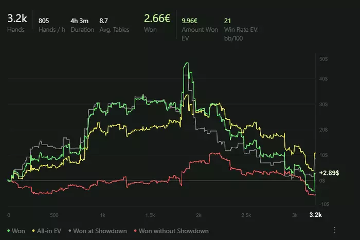 Делаю фокус теперь на зарабатывании фишек, потому что денег в целом уже на этих лимитах мне достаточно, чтобы не акцентировать внимание на денежном результате, а вот кол-во выигранных фишек, я считаю довольно результативный показатель.