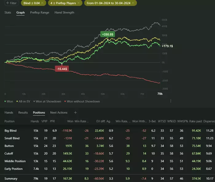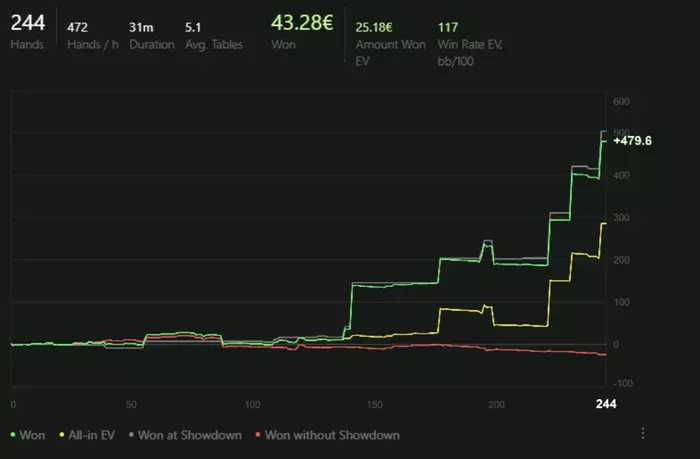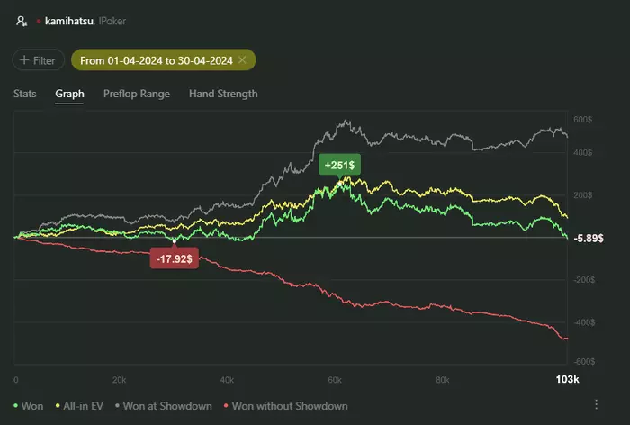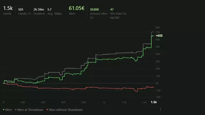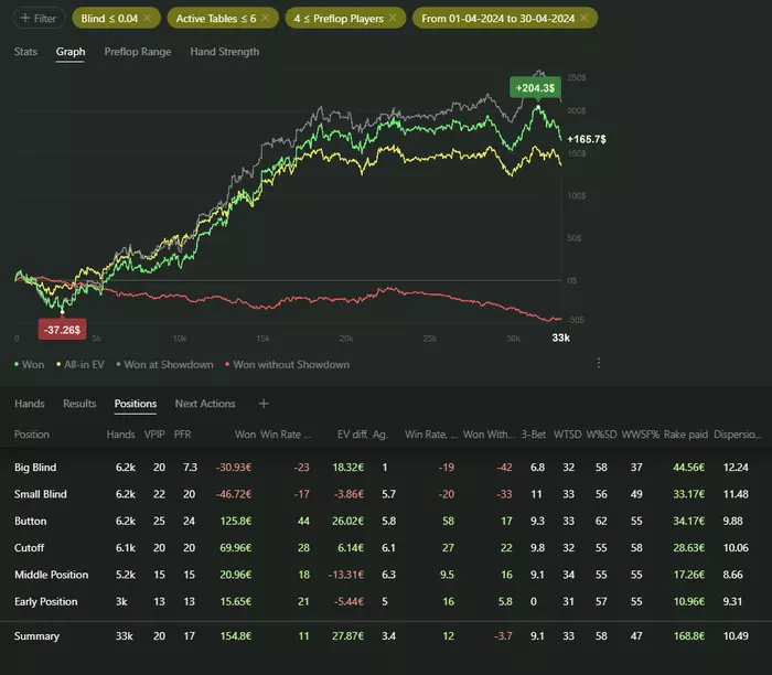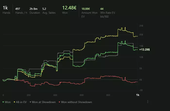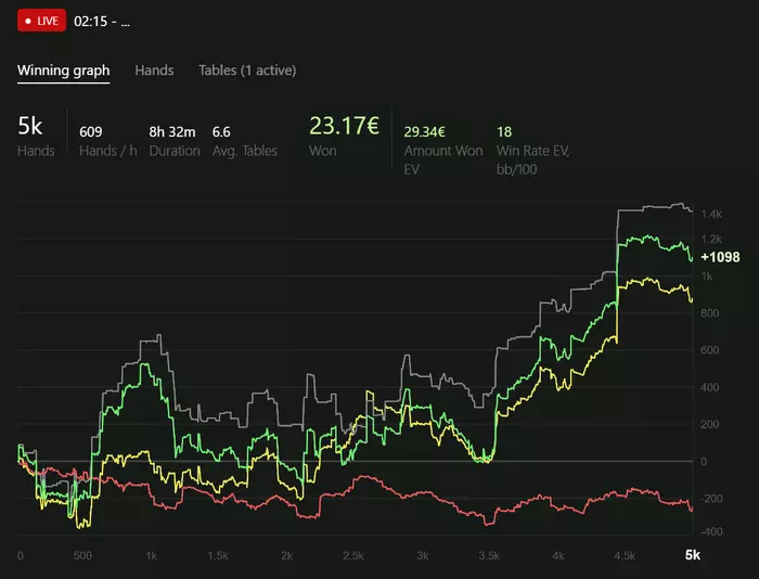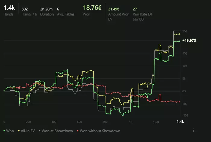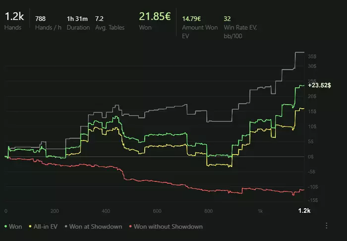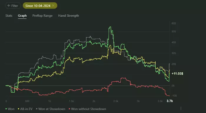 Были периоды где я пытался играть >6 столов чтобы откатывать больше рук, но это по итогу не принесло должного результата. Давайте посмотрим график и оценим.