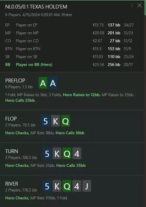 Сегодня еще была раздача интересная, затупил конечно, потому что в таких дипах не играл. Но очевидно ошибку на префлопе еще сделал
