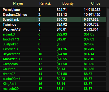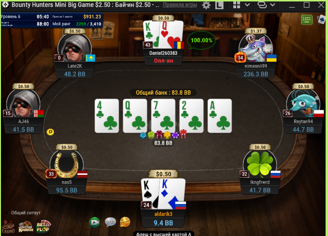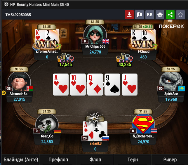 Вчера ПокерОк без шансов ушатывал, даже ни одно баунти не заработал в турнирах, в целом везде нормально выставлялся, но че то не складывалось.
