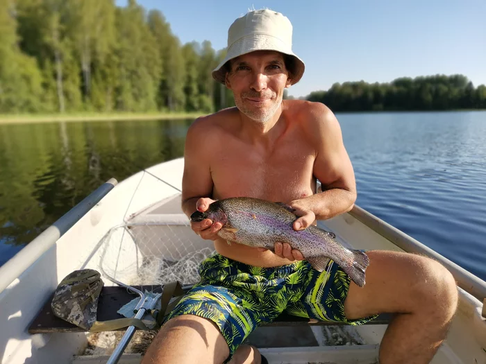 Рыбалка была средненькая-не топовая-первую неделю был по 6-8 часов на озерах))Один-никого нет-других рыбаков-просто красота-езжай куда хочешь-никто не мешает)Мне повезло-я единственный из всех кто выдернул форельку в этом году-причем не маленькую-1.6 кг!Через три часа она уже была засолена-и съедена (как просолилась) за один день-очень квусно-с ранней картошечкой))