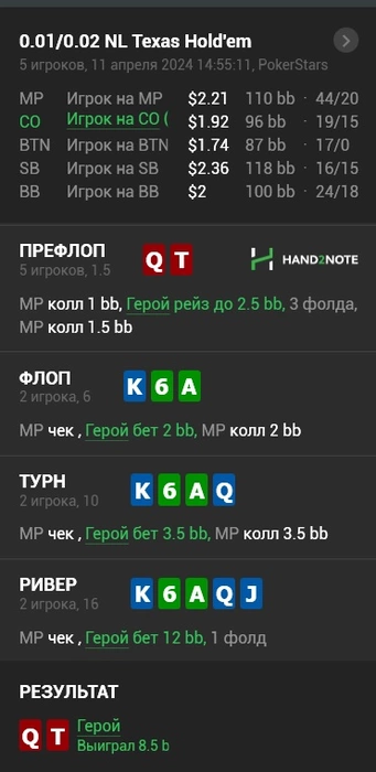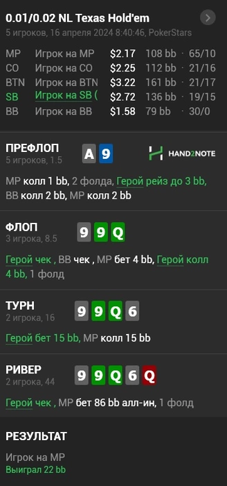 А так mp, co 3б или фолд, особенно на микро лимитах. Да и бтн, почему бы не играть 3б маргинальную руку, чем потом в мультипоте, придумывать руки какие-то которых там нет у людей и отбивать 3 улицы.