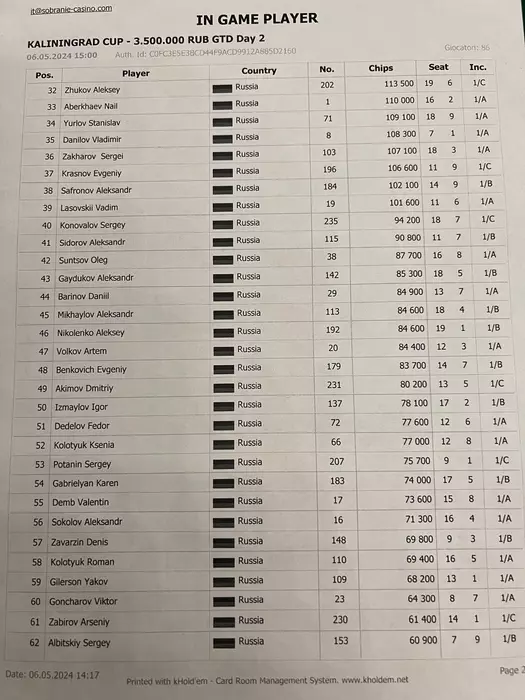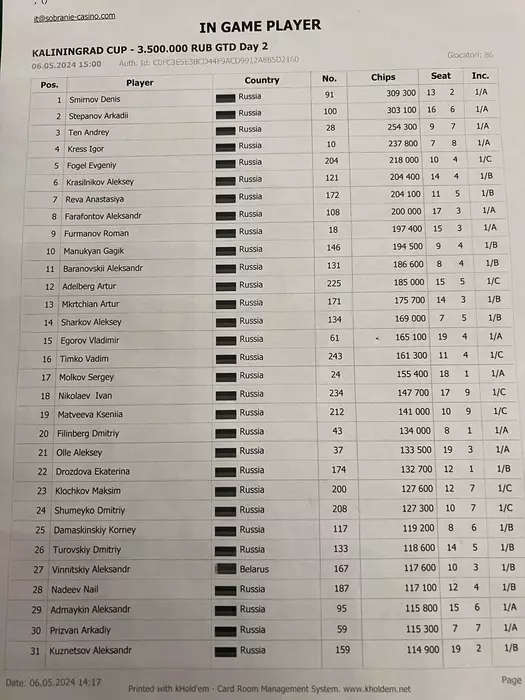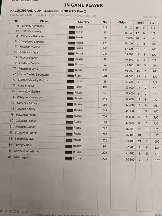 Рассадка и чипкаунт Kaliningrad Cup Day 2