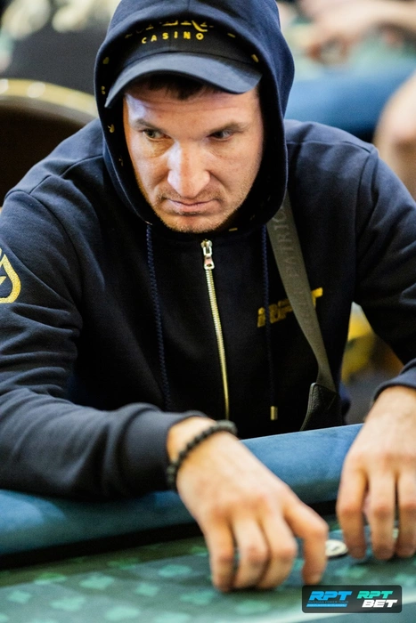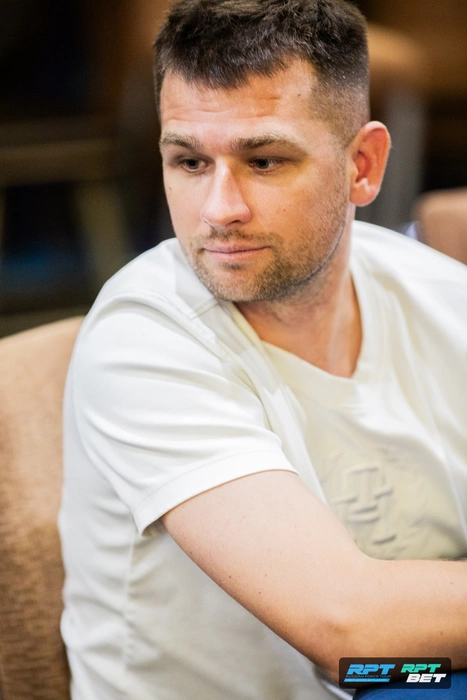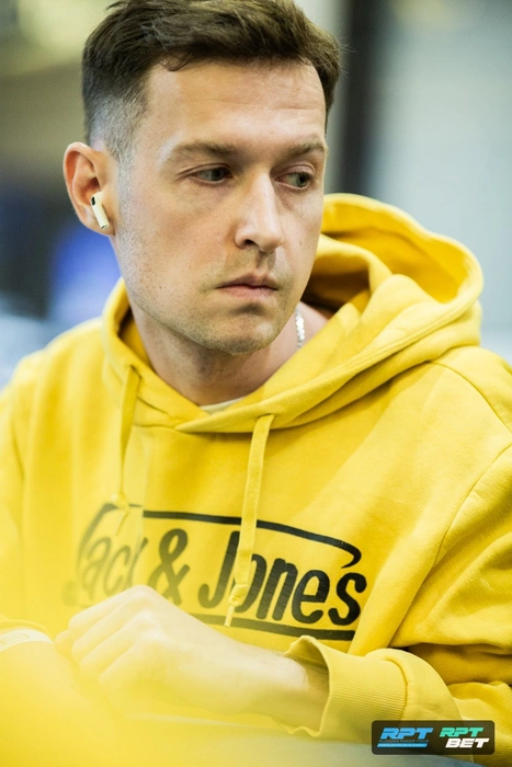 Ривер закрыл пиковый флеш. Панасюк чекнул, Ласовский запушил, Максим — мгновенный пуш. Панасюк выбросил.