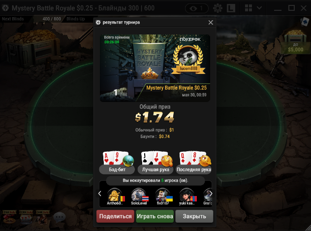 Вот кеш Ипокер с 20.05 по 31.05
