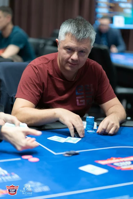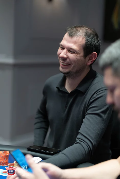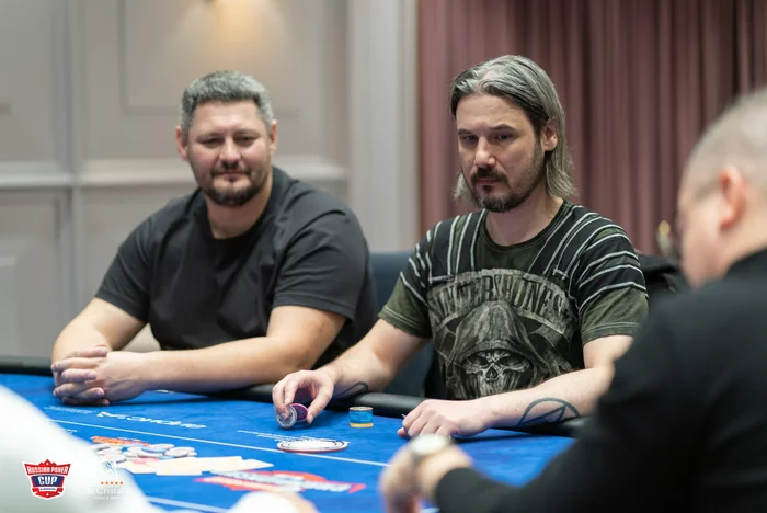 Евгений Скворцов даже не понял, что выиграл эту раздачу. По кругу все игроки удвоились.