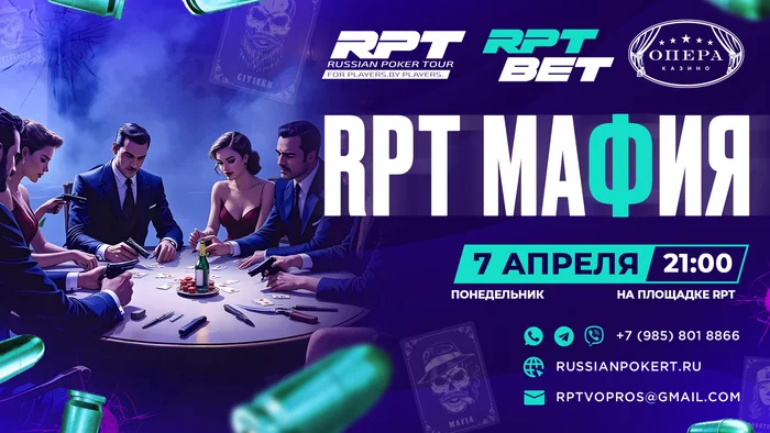 Готовимся спасать мир от коварных планов мафии! Все желающие поиграть записываемся на форуме RPT в телеграм в разделе «Активности», ссылка на форум — http://t.me/russianpokertour2024/461