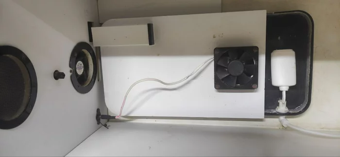 Здесь расположена ванна с поплавковым краном, вентилятор для удаления повышенной влажности и вентилятор для распределения тепла от нагревательного элемента. Сюда устанавливается специальный лоток с инкубационными яйцами, который при необходимости поворачивается с заданным интервалом, что имитирует переворот яиц наседкой и предупреждает патологии развития эмбриона. В этот лоток размещаются яйца строго острым концом вниз:
