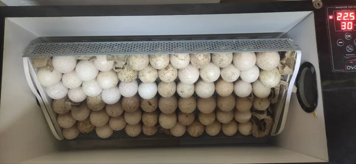 Первые яйца на инкубацию не идут. Жду нормализации яйцекладки. Иногда несут слишком мелкие, а иногда двухжелтковые гиганты