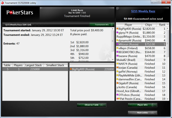 #48 29 Jan 13:30 $320 8-Game, $100K Gtd - 137 из 557.