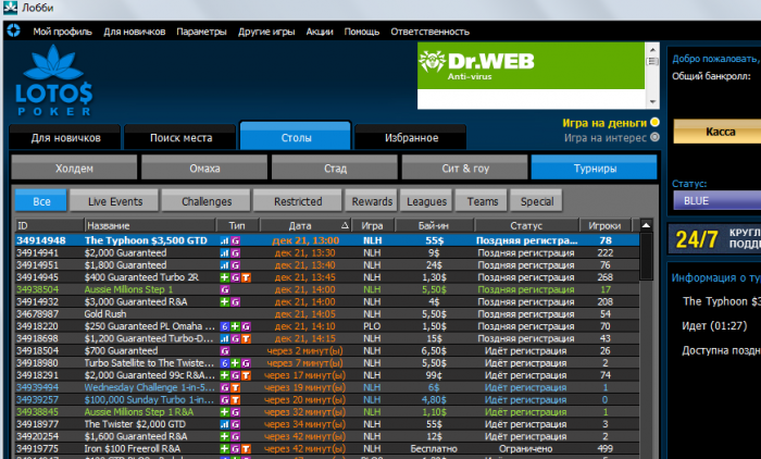 Сначала условие было одобрено, а вчера мы беседовали с представителем самой сети, кто координирует настройку акций для LotosPoker, и мне сказали, что многостоловые снг турниры будут учитываться в снг зачет.