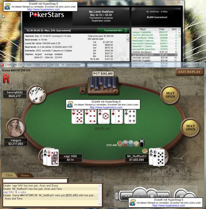 Main pot: t17450 between SB and PAPA TIGR, won by PAPA TIGR