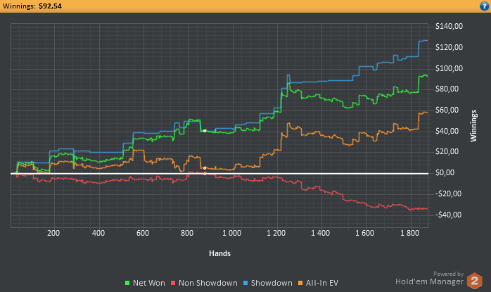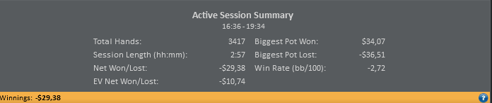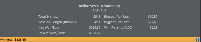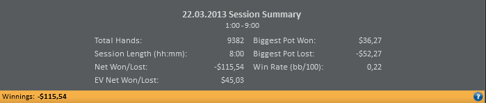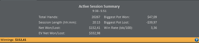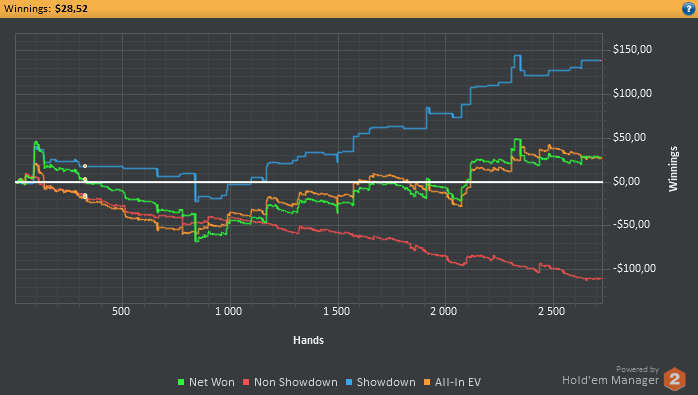 Что касается кеша, то здесь состоялись две совершенно разные по качеству, количеству рук и уровню адекватности развития событий сессии. Я не к тому что если проигрываешь это что-то неординарное, просто когда делаешь это с натсами на протяжении 9к рук, это немного напрягает) Против одного и того же соперника, к примеру: