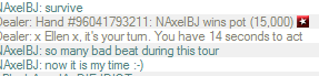 Final Pot:148k NAxelBJ shows two pair, Fives and Threes
