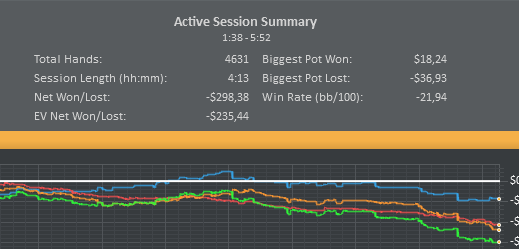 Господи да что же происходит. Эта невменяемая игра и абсолютная неудача сквозит в каждой раздаче. Эта сессия кране важна, иу меня все меньше времени все исправить
