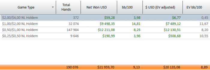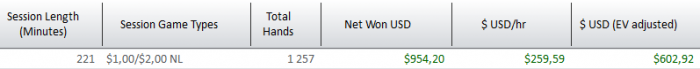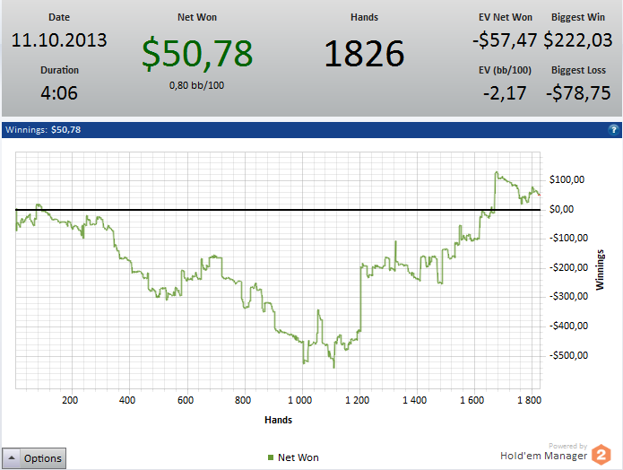 .....Как ни странно обе проблемы можно решить одним простым действием - перейти на нл 400 и закрепиться там. Тогда я стану чуть ближе к своей мегацели "выиграть все деньги", а также покину раздел 50-200, чтобы устранить возникшее небольшое противоречие. На выполнение задачи отведу себе срок до конца года, чтобы в праздничные дни (25 декабря + -) стабильно гриндить 400, а если подфартит - то и выше.