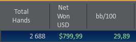 BB showed and won $72 ($35.50 net)