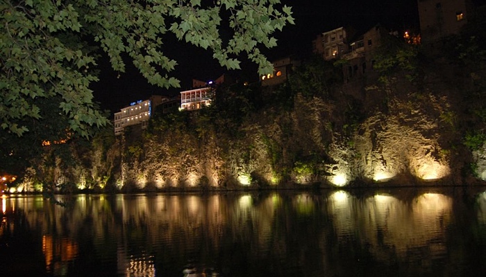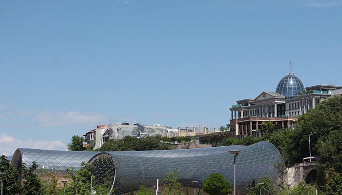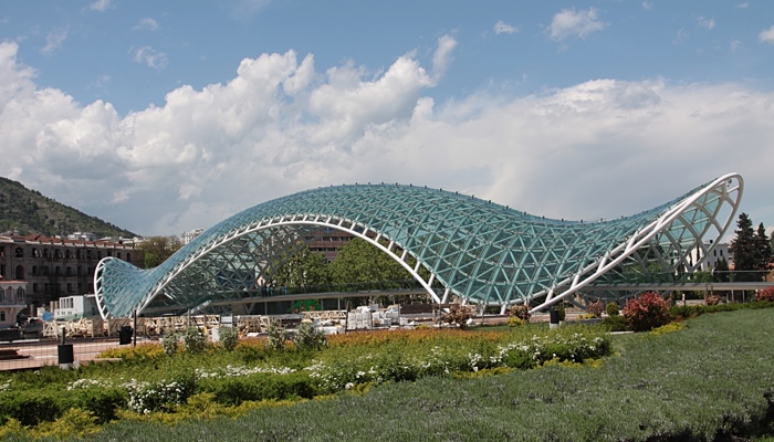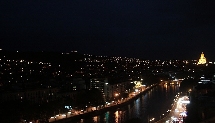 Самый знаменитый - конечно, "мост мира" через Мтквари, получивший в народе прозвание "прокладка". На его месте когда-то находился один из старинных мостов (забыл его название, что-то связанное с осликами). Он заметен днем, но особенно - ночью, когда затмевает собой все в округе.