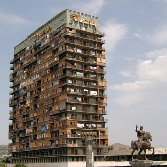 Напротив - не менее уродливые сооружения сразу под резиденцией Президента...
