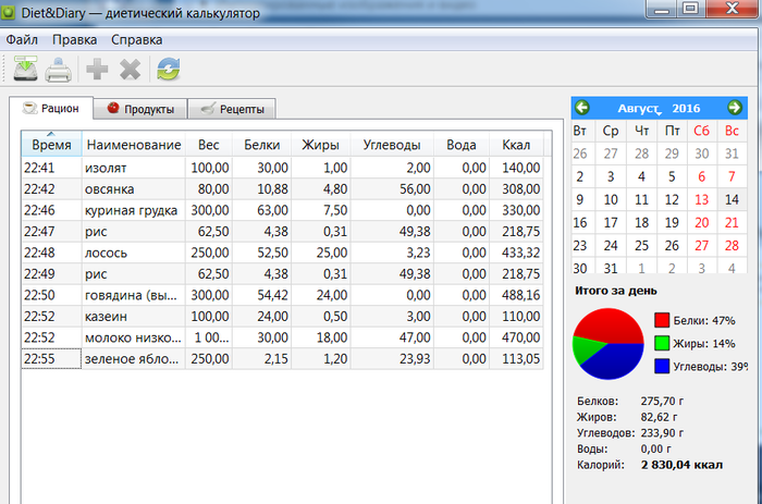 1) Мне кажется, что у тебя неверные данные по питательной ценности говядины и куриной грудки. Вбил твой рацион в cronometer.com и все пункты совпали кроме этих двух. У меня получилось 3240ккал, на 400ккал больше. Перебрал разные варианты куриной грудки и говяжьей вырезки - всё равно получается больше на 400ккал. И эти непосчитанные калории - большая проблема, если ты на диете. Если на массе, то конечно не так страшно.