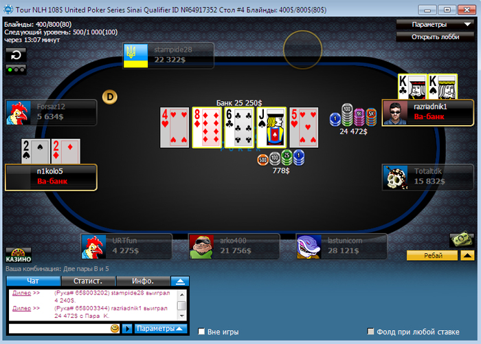 Осталось семеро... Первый претендент на вылет - ICE198026RU со стеком 14К. Единственная его радость, что справа от него lastunicorn - тот поддержит в нужный момент. Вот, жаль, слева - N1kolo5.