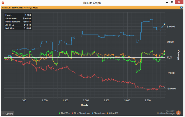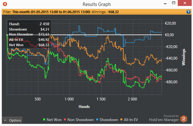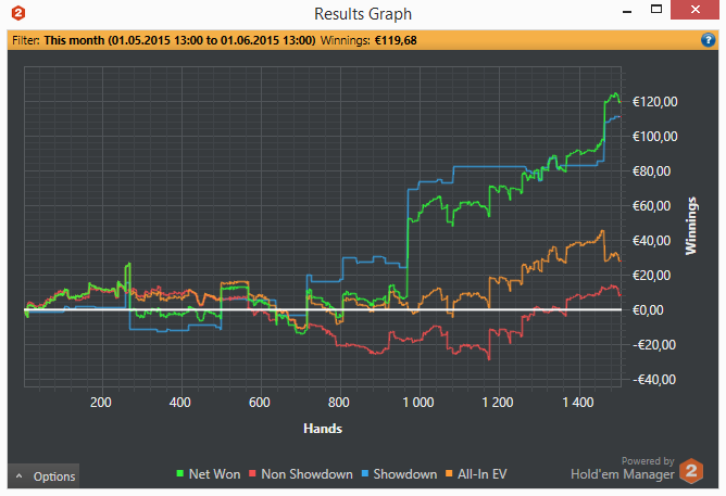 Привет ребят. Сори ничего не писал несколько дней. Работаем над игрой. Последние 3 дня Игры тускловато совсем. Наигрывать не получается столько сколько хотелось бы. Но стоит отметить, что играю каждый день. Стабильно К концу месяца дистанция будет минимум 40к рук. В этом месяце изменил игру блеф 3бетов в позиции. Наконецто начал их играть в хороший плюс. Дистанция пока маленькая, но есть некая уверенность в том что положительная тенденция сохранится т.к. есть четкое понимание как я именно начал делать деньги!