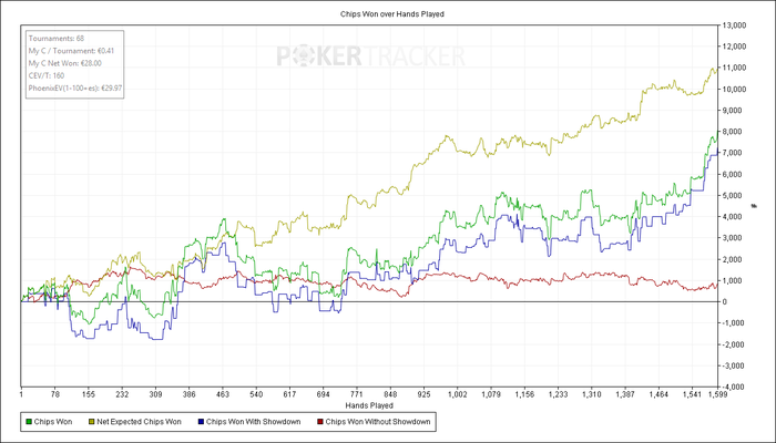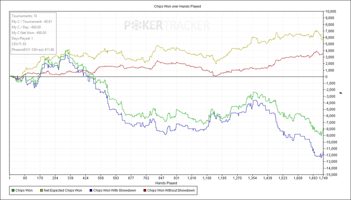 Сыграл 74 шт по 2€, Чипев 85. Профит - 60€, профит ЕВ +11.86€. Результат не парит, ибо пул компенсирует разницу.