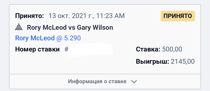 gangrena_23 @ 13.10.21Очень обидное поражение конечно. Но мб Ивану все же путёвку в тур предоставят, типа как Бойко. Хамзе Акбару вроде тож как то путёвку продлевали, из Пакистана или откуда он там, с целью популяризации снукера в стране. Может и на российский рынок у снукерного руководства какие планы имеются