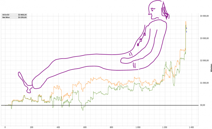 Примечание: экспозиция отражает результаты в PLO. Дорогие тренировки на PLO8 и дешевые на NL оставлены без внимания ради сохранения целостности рисунка