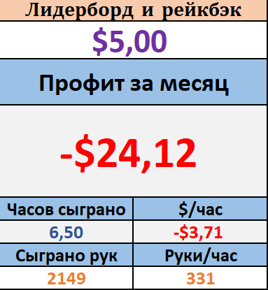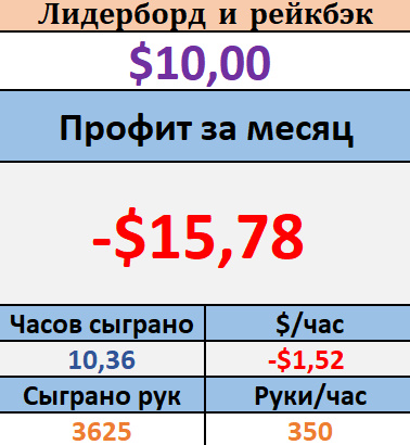 В покере тоже хреново. Играл мало, ошибался много, хотя и начал месяц неплохо.