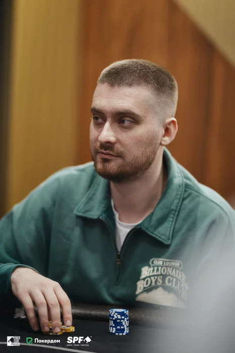 Стол 1. Вячеслав Кардаш (42,000) открылся из UTG+1, Кирилл Щербаков (65,000) уравнял на HJ, Михаил Заволока (15,000) доставил на большом блайнде.