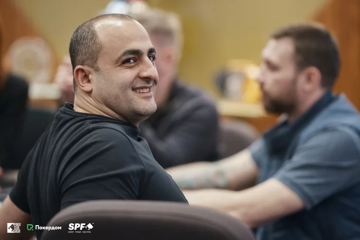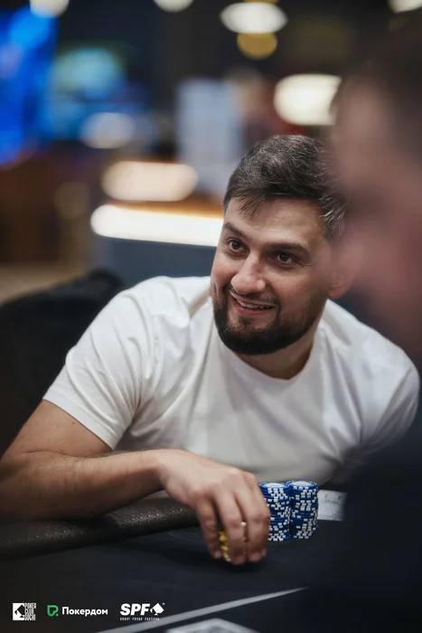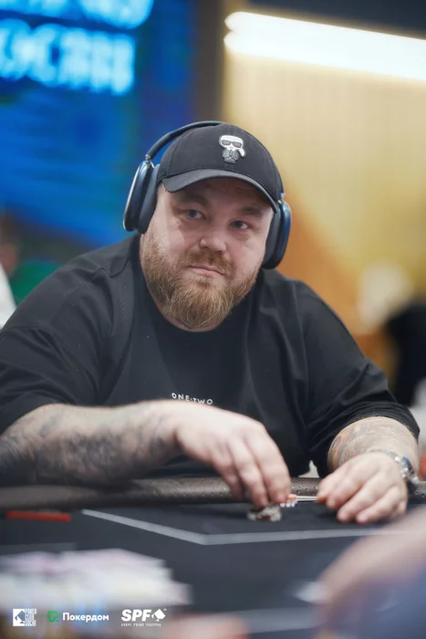 Стол 2. Александр Санников проиграл большую раздачу, уравняв олл-ин на ривере с топ-парой, у Нвера Ваняна был флеш с флопа. Через несколько раздач Александр покинул турнир, и осталось два стола.