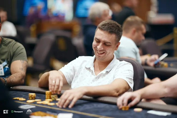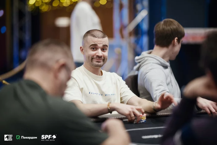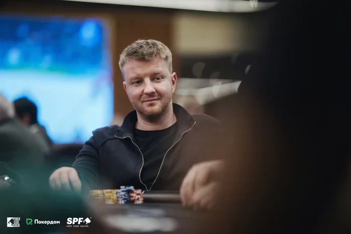 Максим Луговской начинал день со стеком в пять блайндов, но смог дойти до третьего места и получить 4,325 у.е. призовых. Что называется, выжал максимум.