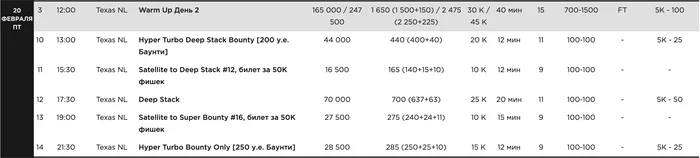 В 15:30 стартует сателлит на Deep Stack с бай-ином 165 у.е. в формате "билет за 50,000 фишек".