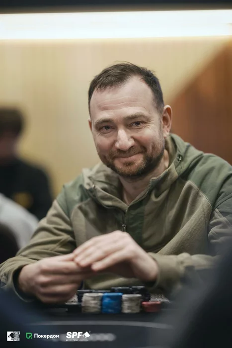 Руслан Жмак (300,000) удвоился префлоп: > . Доска: . После этой раздачи игроки попросили пятиминутный перерыв.