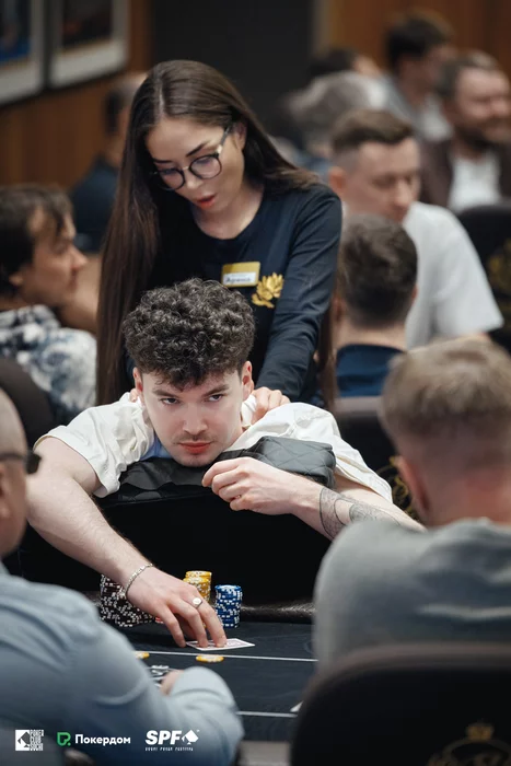 Дмитрий Назаров — аут. За соседним столом не сумел крутануться с короткого стека Вячеслав Кардаш. Час до перерыва, после которого закроется регистрация.