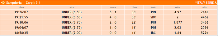 Дим, какой-то баг произошел при простановке ставки. Там уже тотал 7.5 давали, а прога взяла 6.5 за кэф 5. Видимо, это ставка в момент гола и отмена, так ведь? И вообще, может ну ее, эту игру, там еще Это'о у Сампдории не забивал.