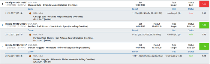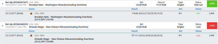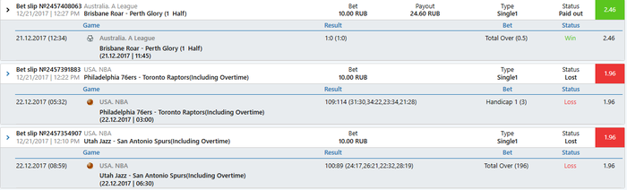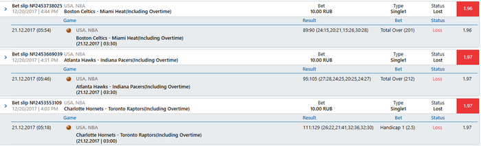 20.12.2017 03:00 Basketball. USA. NBA. "Philadelphia 76ers" - "Sacramento Kings" ( Inc. OT ) : AH 2 (+8.5) 1.99 10.00 RUB